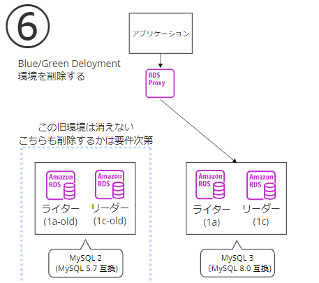 ⑥Blue/Green Deployment環境を削除する。旧環境はまだ消えていない。