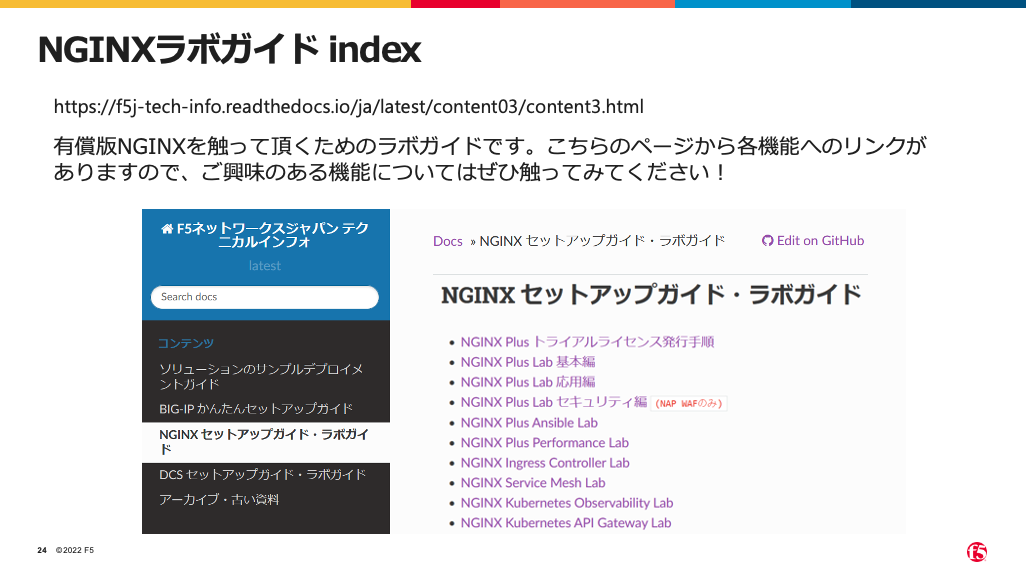 NGINXでは、豊富なラボが用意されていました。