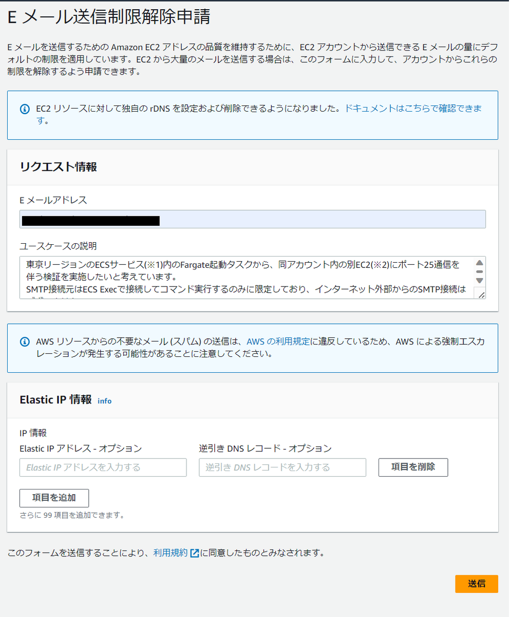 ネットワークもアプリケーションも問題ないということで、「メール送信制限がECS on Fargateにも適用されるんじゃないか」という話になりました。