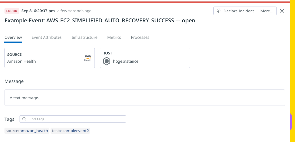 期待通り、AWS Health Integration から発行された場合に限りなく近い形となっています。