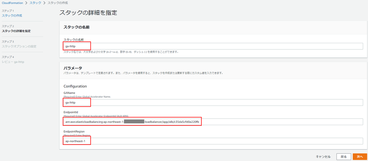 | EndpointRegion | 例)ap-northeast-1 | Web サーバーのエンドポイント(ALB)が存在するリージョン |