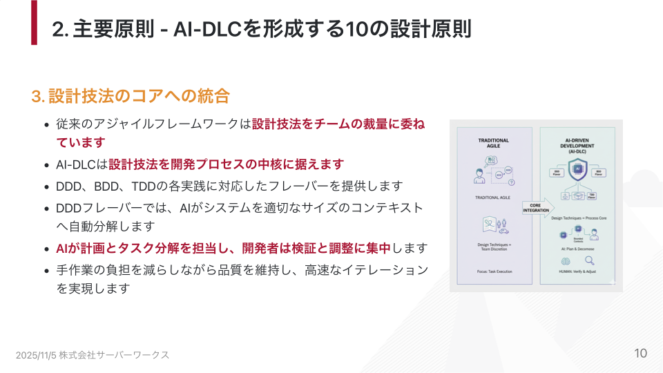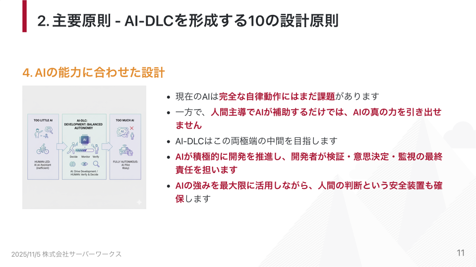 AI-DLCには10個の設計原則がありますが、今回の勉強会では特に重要な5つを紹介します。