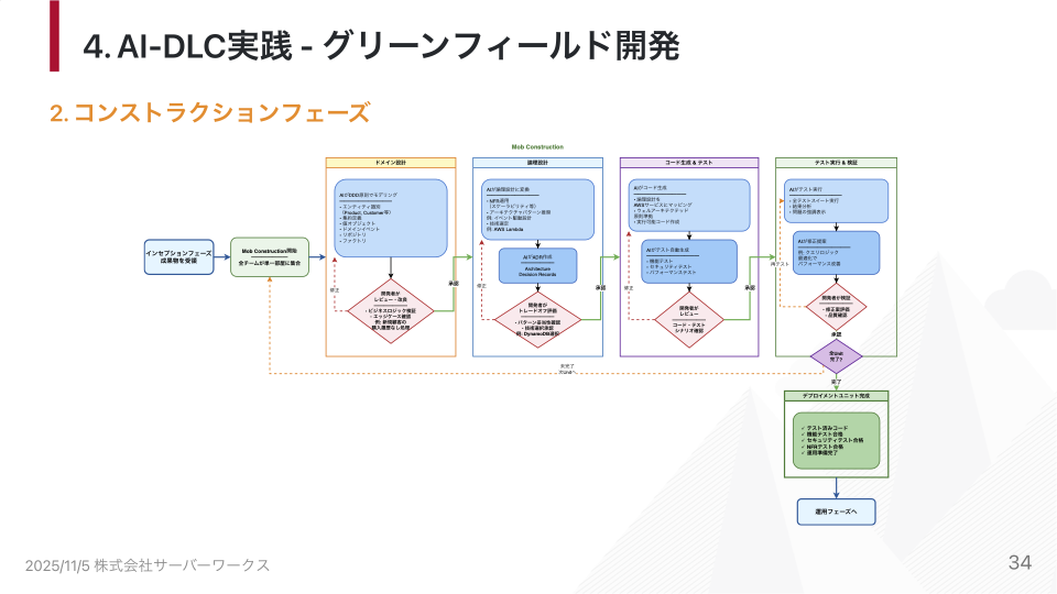 わかりやすい例えとして、Googleマップを考えてみてください。目的地を設定すれば、最適なルートは自動的に提案されます。私たちはそのルートを確認して承認するだけです。AI-DLCでも同様に、AIが全体像を示し、人間は重要な判断ポイントで意思決定を行う役割に徹します。