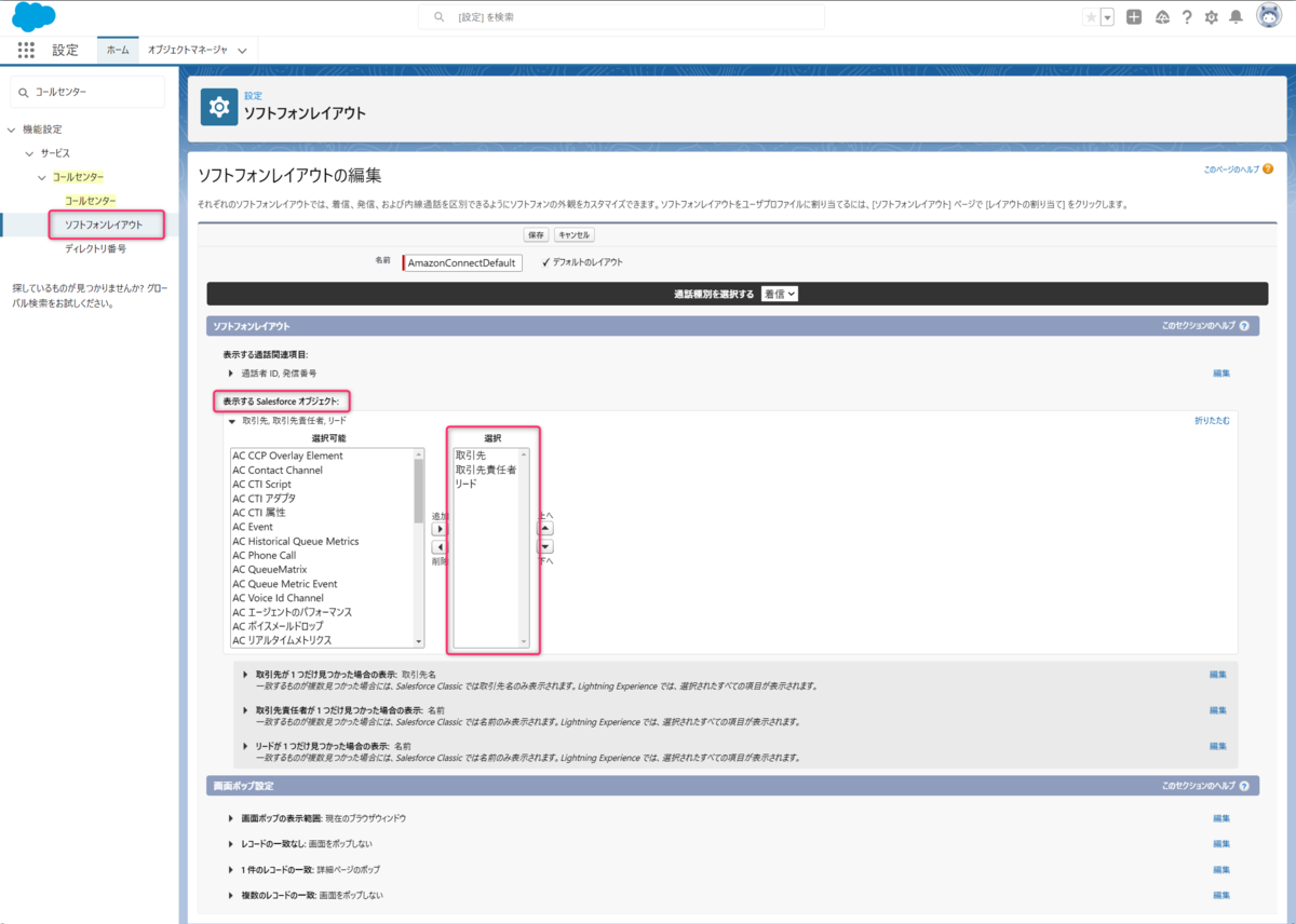 CTI Adapter for SalesforceによってAmazon Connect と セールスフォースを統合した場合の顧客情報表示機能動作を確認、設定を確認します。