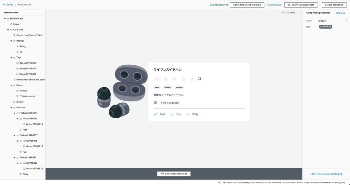 詳細で表示するモーダルは、Amplify UI kit の ProductCard をそのまま使用します。