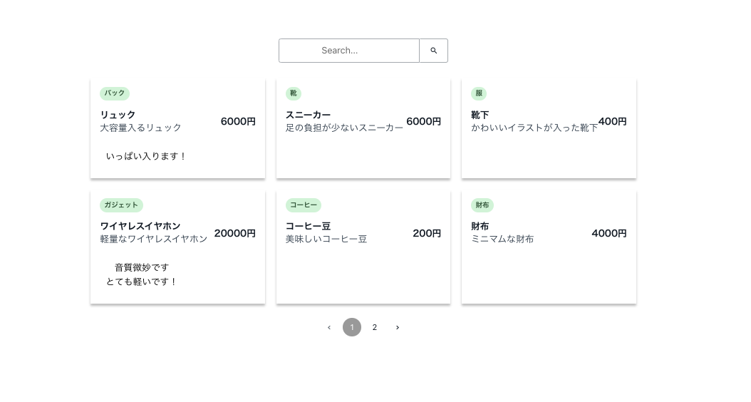 検索とページネーションも問題なく動作しました!