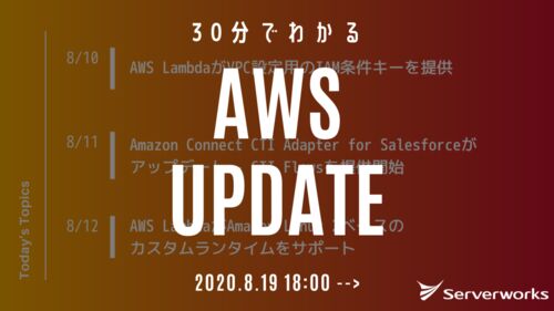 こんにちは、技術1課の加藤です。 1 週間で発表された AWS UPDATE の中から、サーバーワークスのエンジニアが気になったトピックをピックアップして解説する「30分でわかる AWS UPDATE!」 第 24 回放送しました。 いつもは司会の僕が今回はアップデートの紹…
