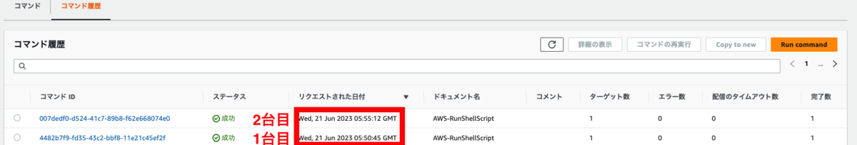 1回目に実行したのは、14:50:45で、2回目に実行したのは、14:55:12です。