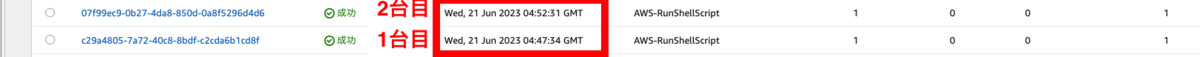1回目に実行したのは、13:47:34で、2回目に実行したのは、13:52:31です。