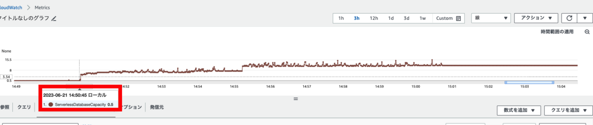 リクエストを受け付けた時間は最小ACUである0.5であることが確認できます。