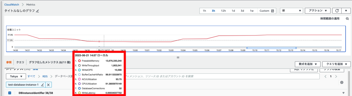 | WriteIOPS | 1 秒あたりに生成された Aurora ストレージ書き込みレコードの数を確認できます。 |