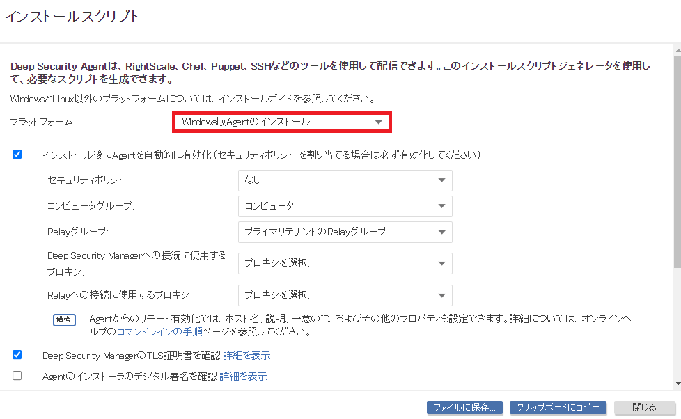 プラットフォーム:Windows版Agentのインストール