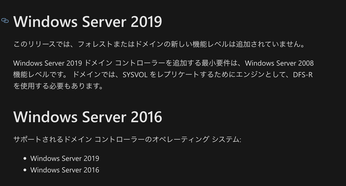 ご参考: Windows Server 2016 の機能レベル | Microsoft Learn