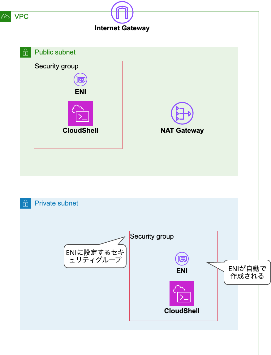 パブリックサブネットにCloudShellを作った場合、ENIがグローバルIPが持っておらずそのままではインターネット通知ができませんでした。