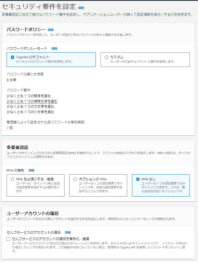 - 参考:AWS::Cognito::UserPool - AWS CloudFormation