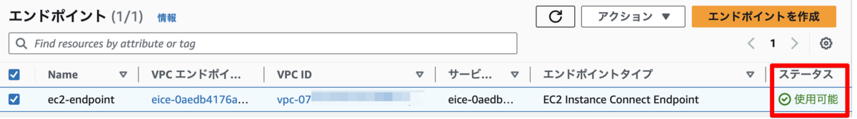 EC2 Instance Connect Endpointの作成