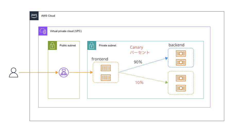 ブルー/グリーンデプロイの一種で、ブルー環境とグリーン環境それぞれに振り分けるトラフィックの割合を設定することができます。