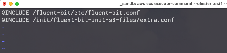 @INCLUDE /init/fluent-bit-init-s3-files/extra2.conf # extra.conf を extra2.conf に書き換え