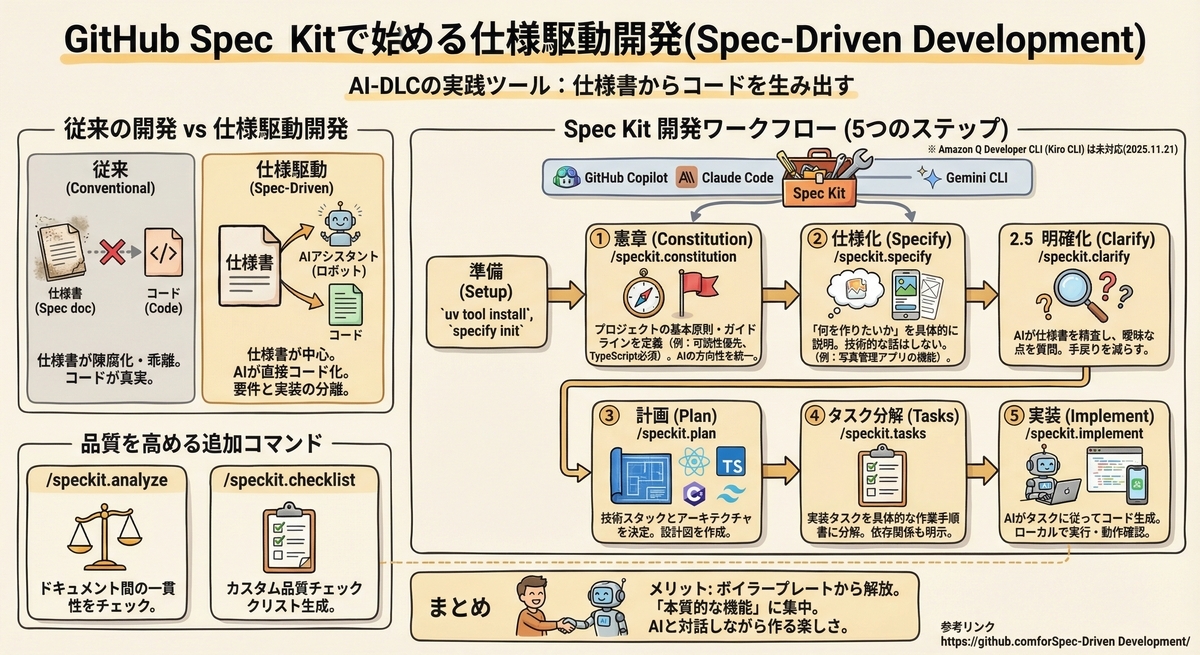 その中で、AI-DLCを実践するツールとして、GitHubのSpec Kitを紹介しました。 今日はこのSpec Kitについて解説したいと思います。
