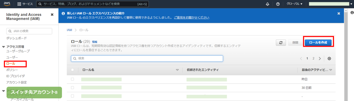 スイッチ先アカウントBで IAM ロールの準備をします。