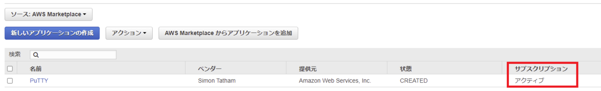 Putty追加後の[ソース: AWS Marketplace]の画面