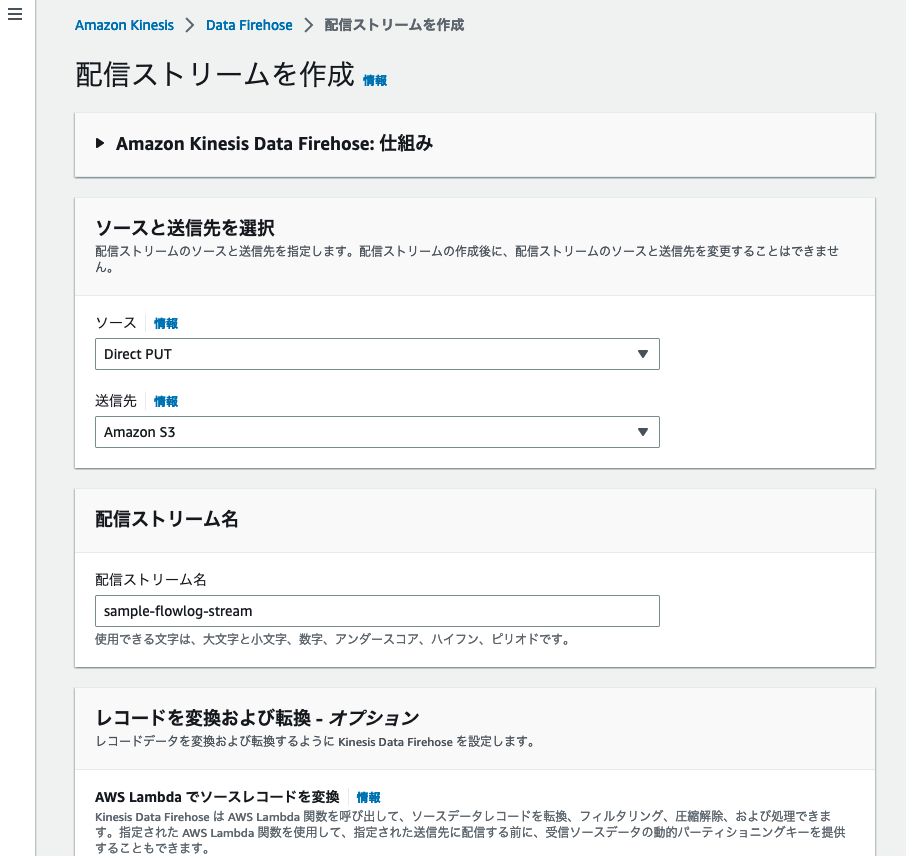 | Kinesis Firehose 配信ストリーム | {作成済の配信ストリーム名} |