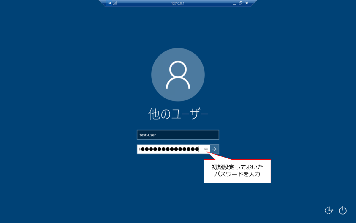 再度、新しく作成したユーザでRDP接続します。