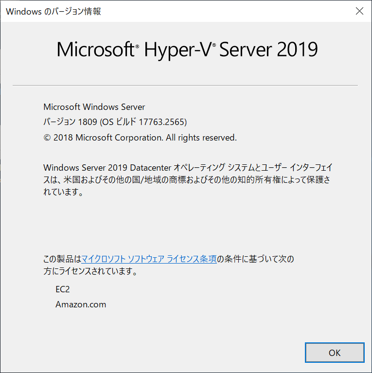 - バージョン 1809 (OSビルド 17763.2565)