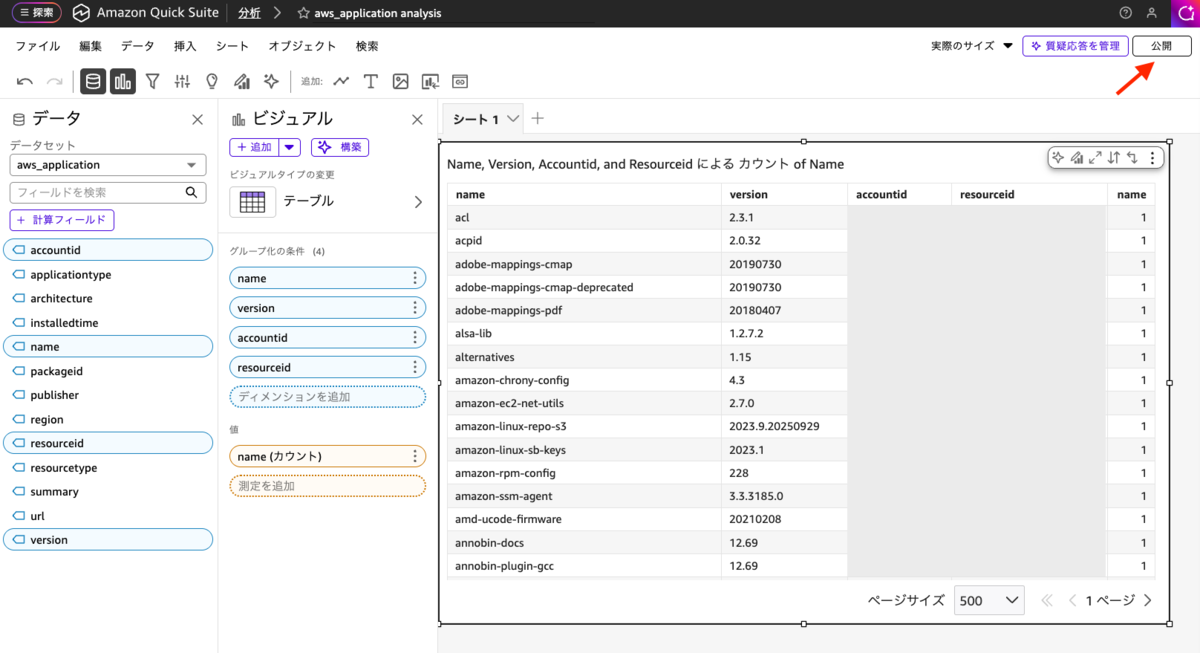 手順5. Amazon Quick Suite (QuickSight)でインベントリデータのダッシュボードを作成する