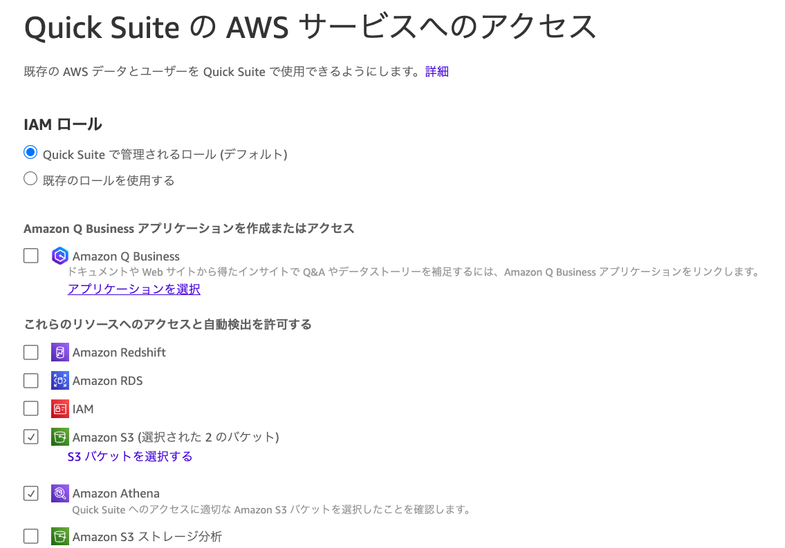 - Amazon Quick Suite は「us-east-1」でアカウントを作成していること(アジアパシフィック(東京)リージョン未サポートのため)